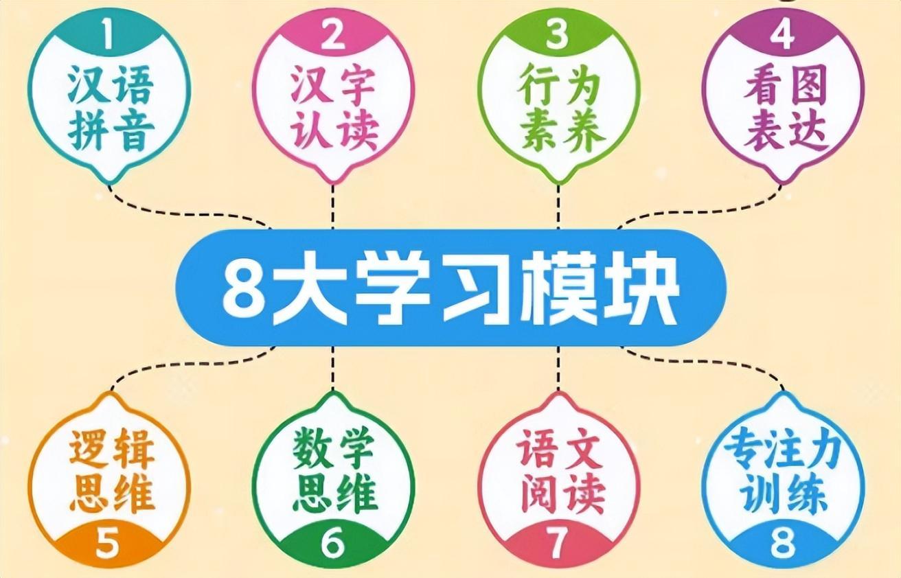 包括了漢字認讀、漢語拼音、數學思維、邏輯思維、看圖表達、語文閱讀這6本。