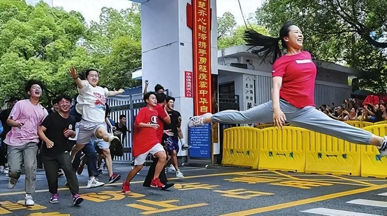 對於第一個出考場,還是“一字馬”跳出考場的考生,記者自然不會錯過。