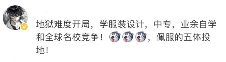 有一位網友的評論,想必也是大家的心聲:地獄難度開局,學服裝設計,中專,業餘自學和全球名校競爭!