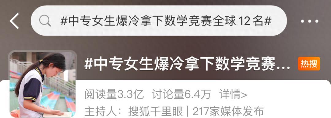 17歲中專女生,全球數學競賽12強:你以爲的“廢了”,或是新開始