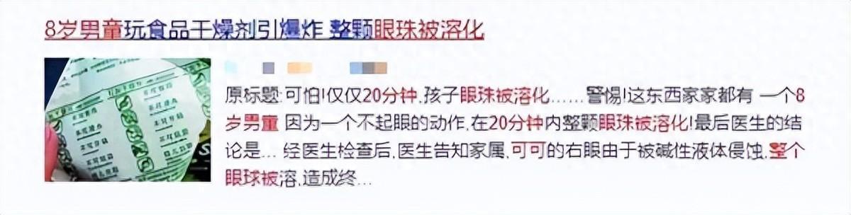 乾燥劑在生活中是非常常見的,零食、服裝等,到處都有,孩子也能輕易接觸得到。
