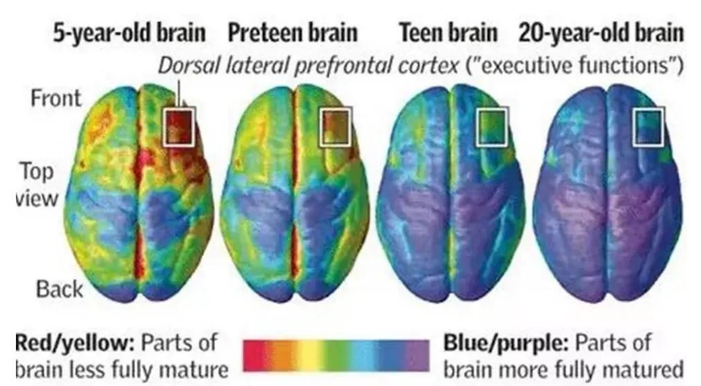 但是負責抑制衝動、高級認知功能等的前額皮質,卻需要到25歲左右纔會發育成熟。