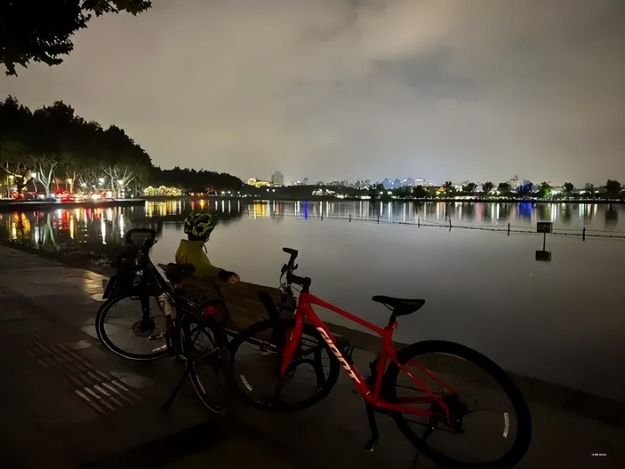 工作一天很心累,哄孩子睡着了,遛出來圍着西湖騎一圈。