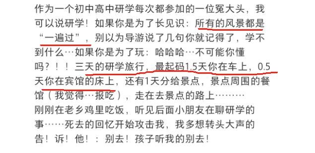 像這種研學,能不去就不去,親子陪伴,或者少數幾個孩子一起約着,再由大人帶着去,不香嗎?