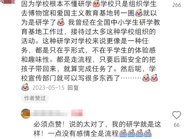 這個網友曾在研學教育基地工作過,在他看來,這種研學對於學校來說,更像是一種任務。
