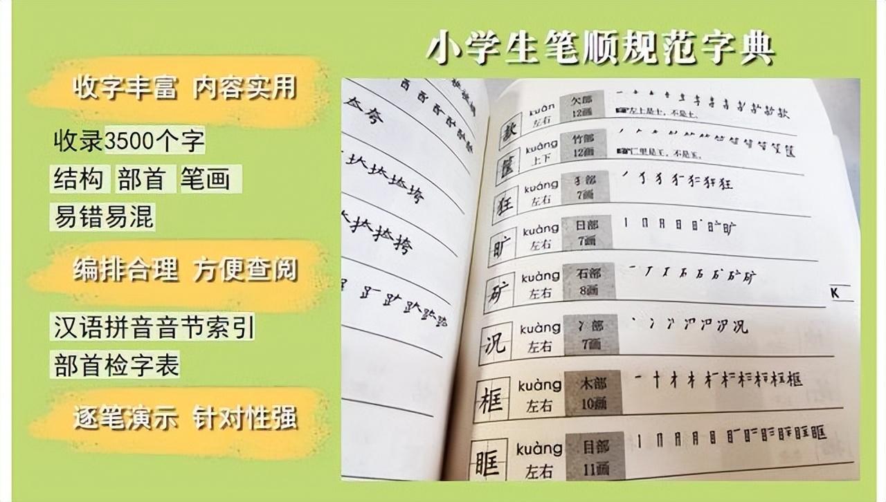 比如,開心果在寫字上還比較生疏,很多字都不知道筆順,拿捏不準的時候,她就會自己翻閱這本《筆順規範字典》,找到對的筆順,繼續寫字;