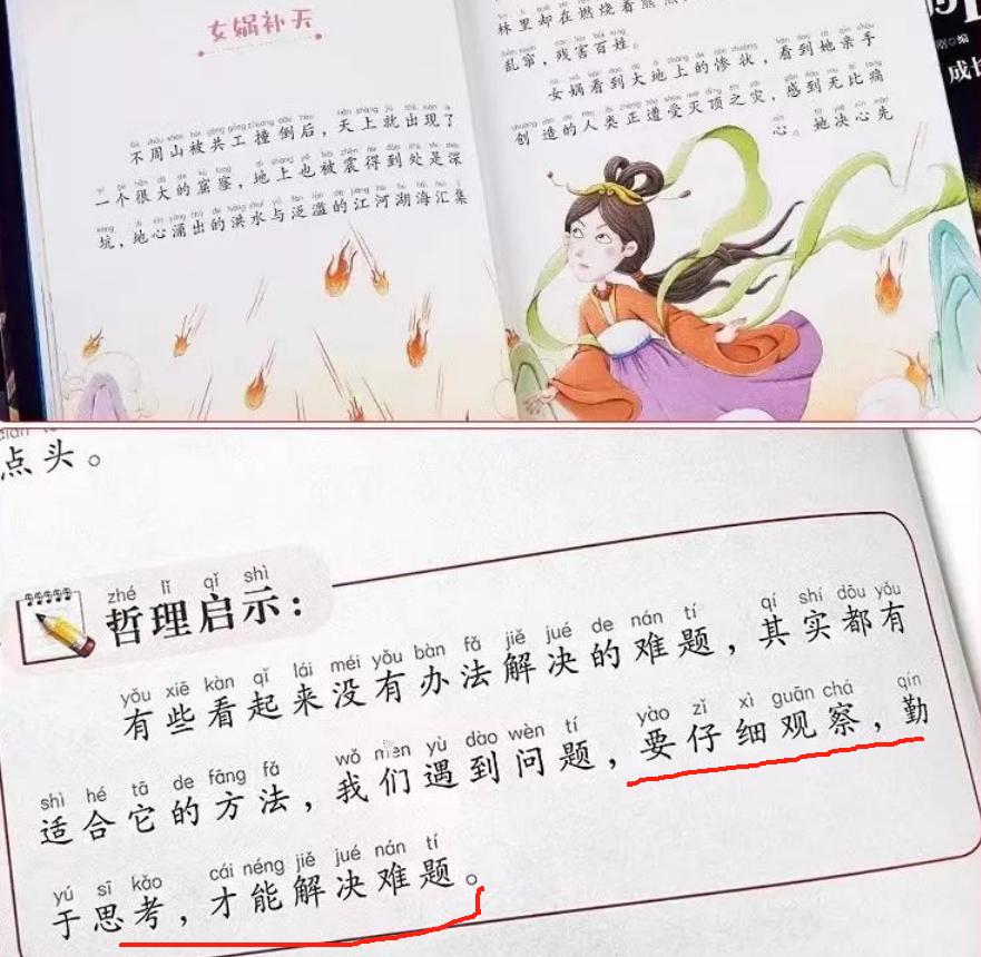 在這個過程中,孩子就開啓了“思考模式”,不僅是對故事的思考,其實也是對生活的思考,孩子的三觀開始建立。