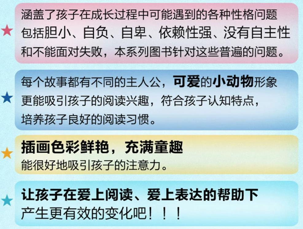 在繪本的引導下,孩子溝通能力得到提升的同時,情緒控制能力、問題解決能力、膽量、社交等等各方面的能力,都能得到提升,孩子的情商,自然也會有質的飛躍。