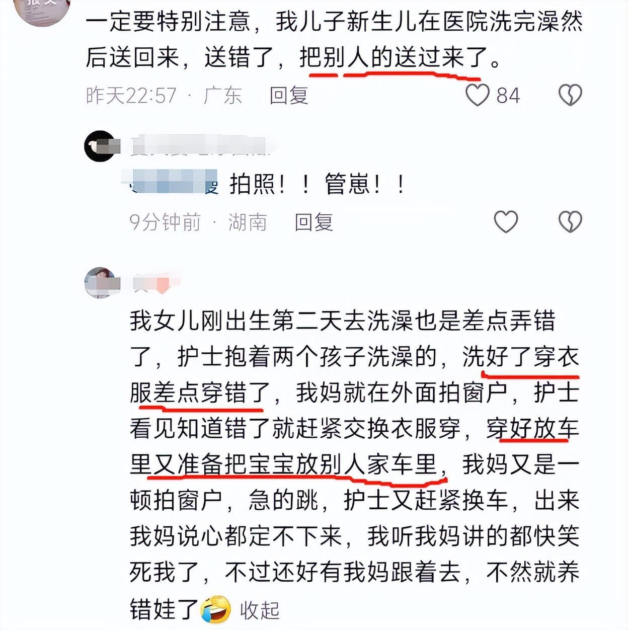 評論區不少寶媽都分享了洗澡抱錯的事情。