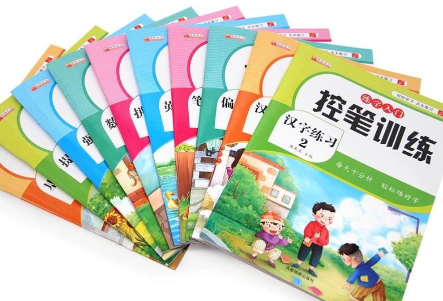 這套書一共有10本,大開本,能夠全方位帶孩子練習控筆:線條-數字-拼音-英語-筆順筆畫-偏旁部首-漢字。
