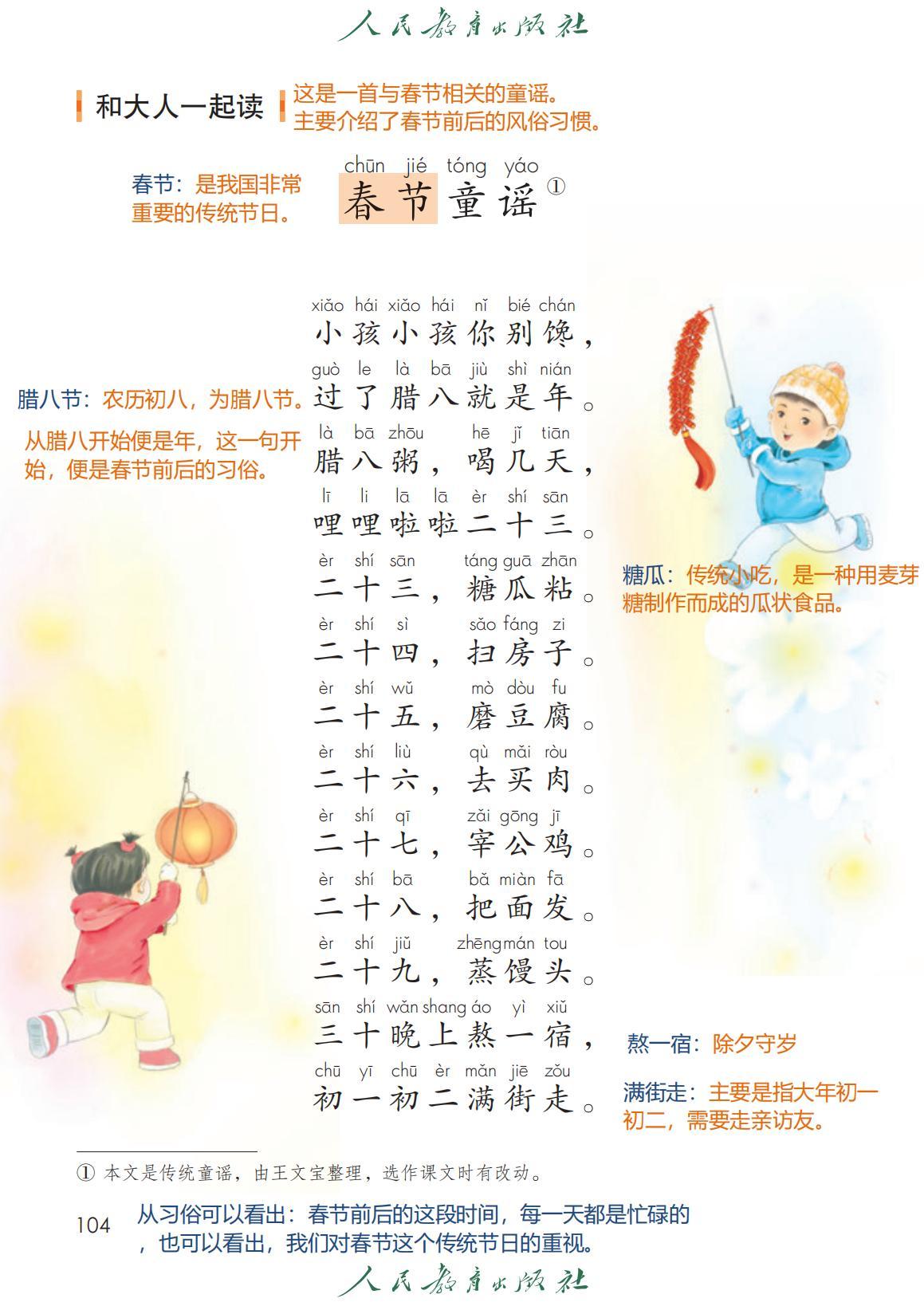 《春節童謠》放在最後一篇,也是有道理的,畢竟學完這篇,即將放假,放假後便是過年了,這首童謠就非常“應景”了。