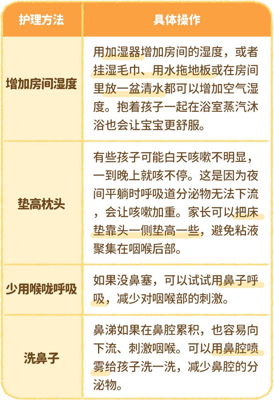 具體來說,可以這樣給孩子護理,減少咳嗽頻率,孩子也能舒服一大截: