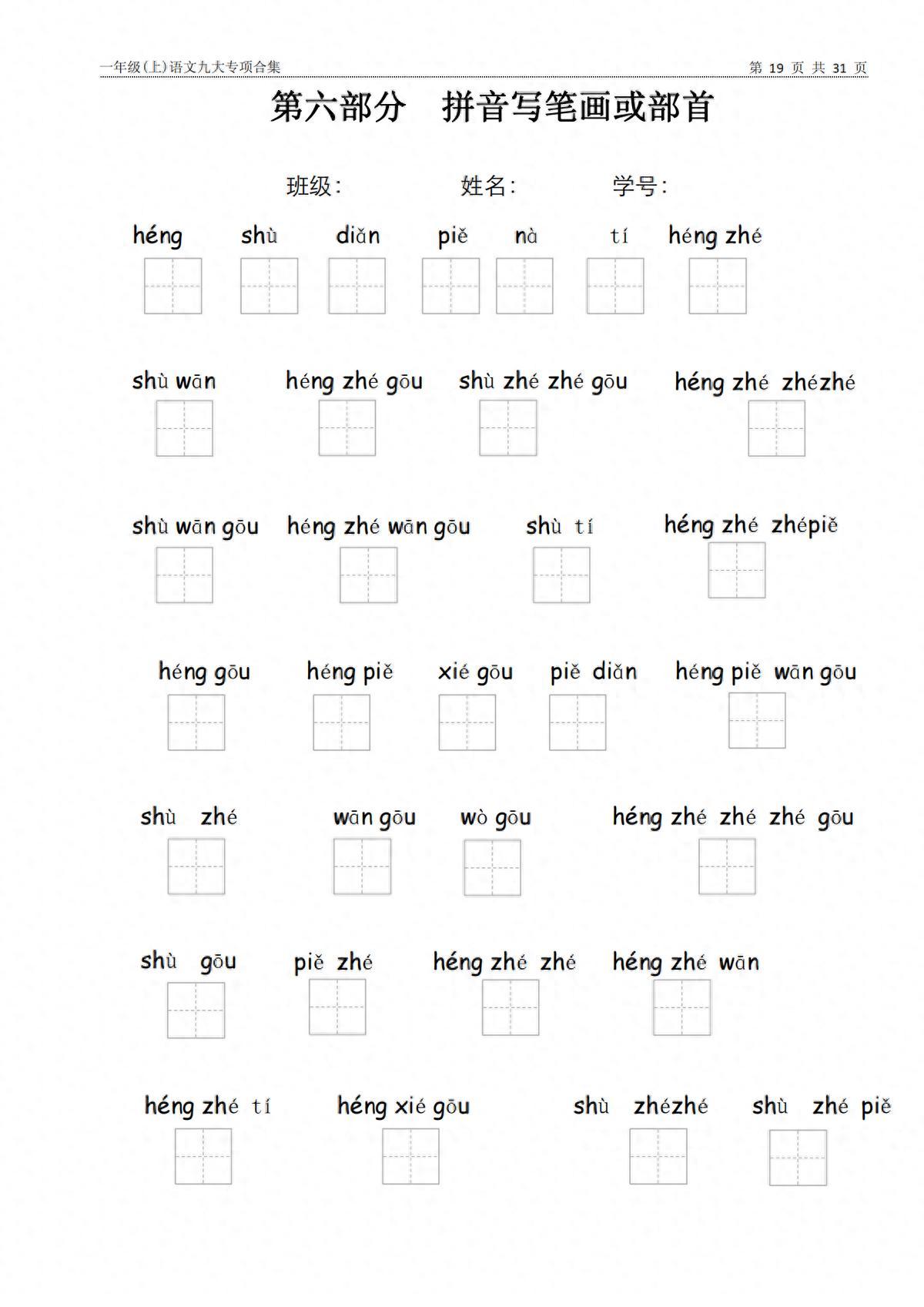 一年級“筆畫與部首”專項練習,看這一篇就夠了
