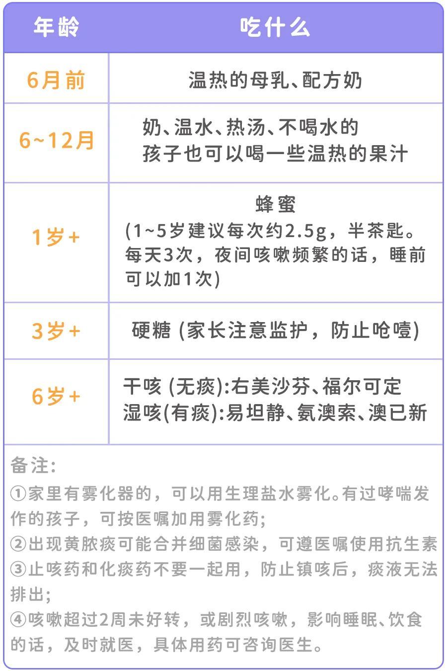 6 歲以下的兒童,一般不建議用止咳藥。如果咳嗽,可以按照表格護理: