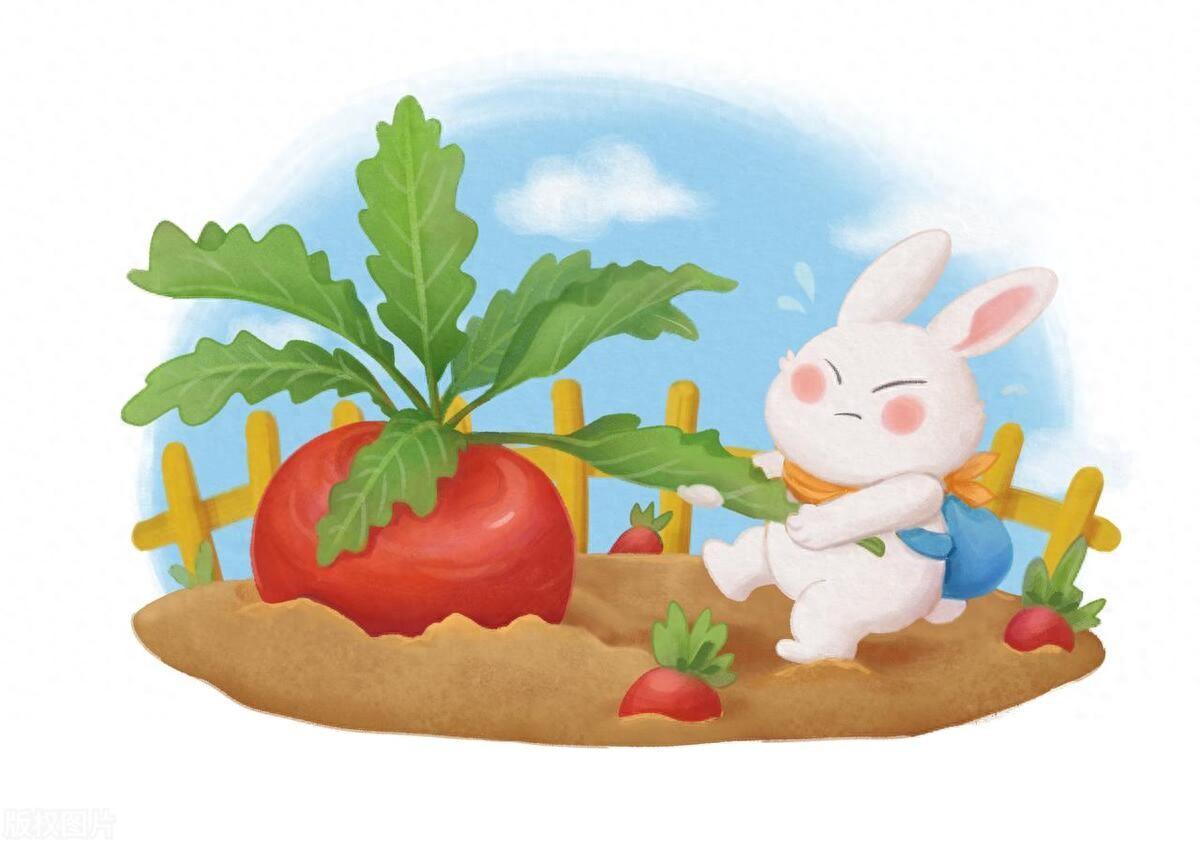 小兔子趕緊彎下腰,挨個把蘿蔔撿起來。