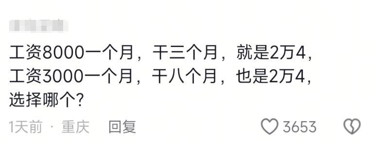 工資8k一個月,幹三個月,是兩萬四;