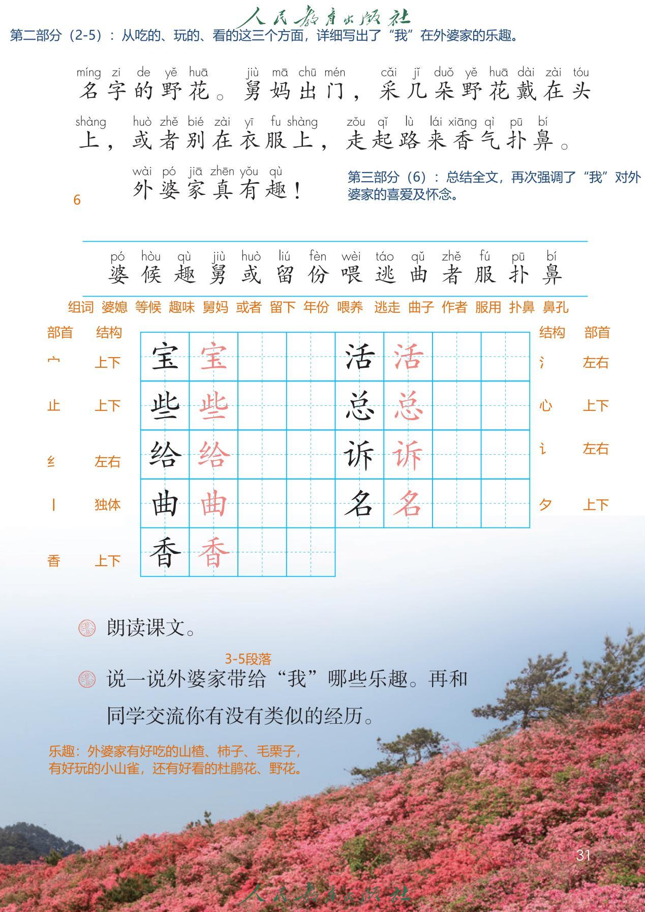 二年級語文:《去外婆家》課堂筆記+文章結構總結