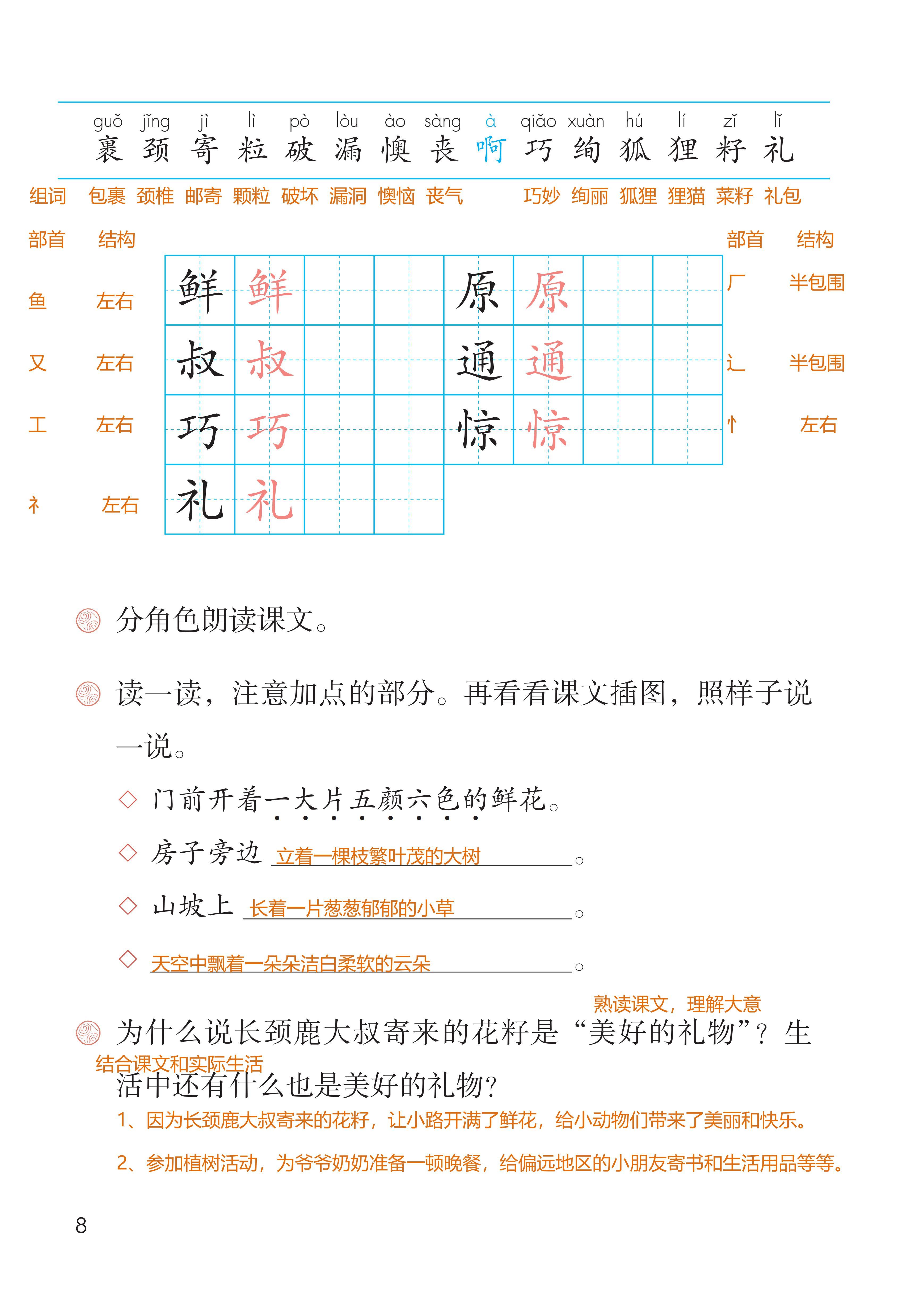 答:“美好的禮物”指的是長頸鹿大叔寄來的花籽。
