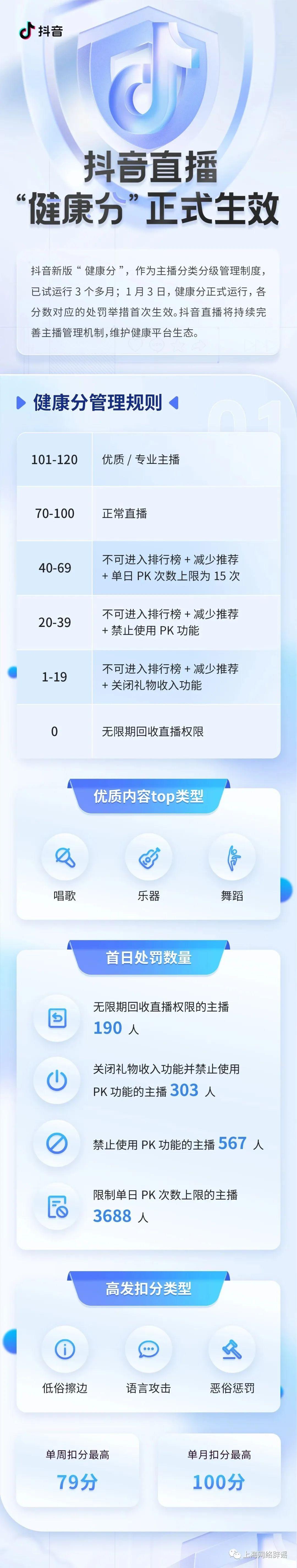 1月3日,抖音直播新版“健康分”處罰正式生效,近5000名主播當日被減少直播推薦、限制功能甚至永久回收直播權限,其中包括303名主播被關閉收禮物權限。