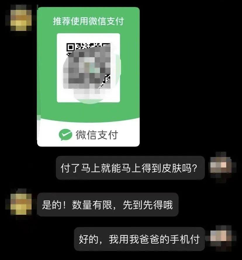 喜愛玩“蛋仔”的汐汐在“免費皮膚”的誘惑下,私信了發佈視頻的“博主”,隨後對方發來一個微信支付二維碼,要求支付1.88元即可領取“皮膚”。