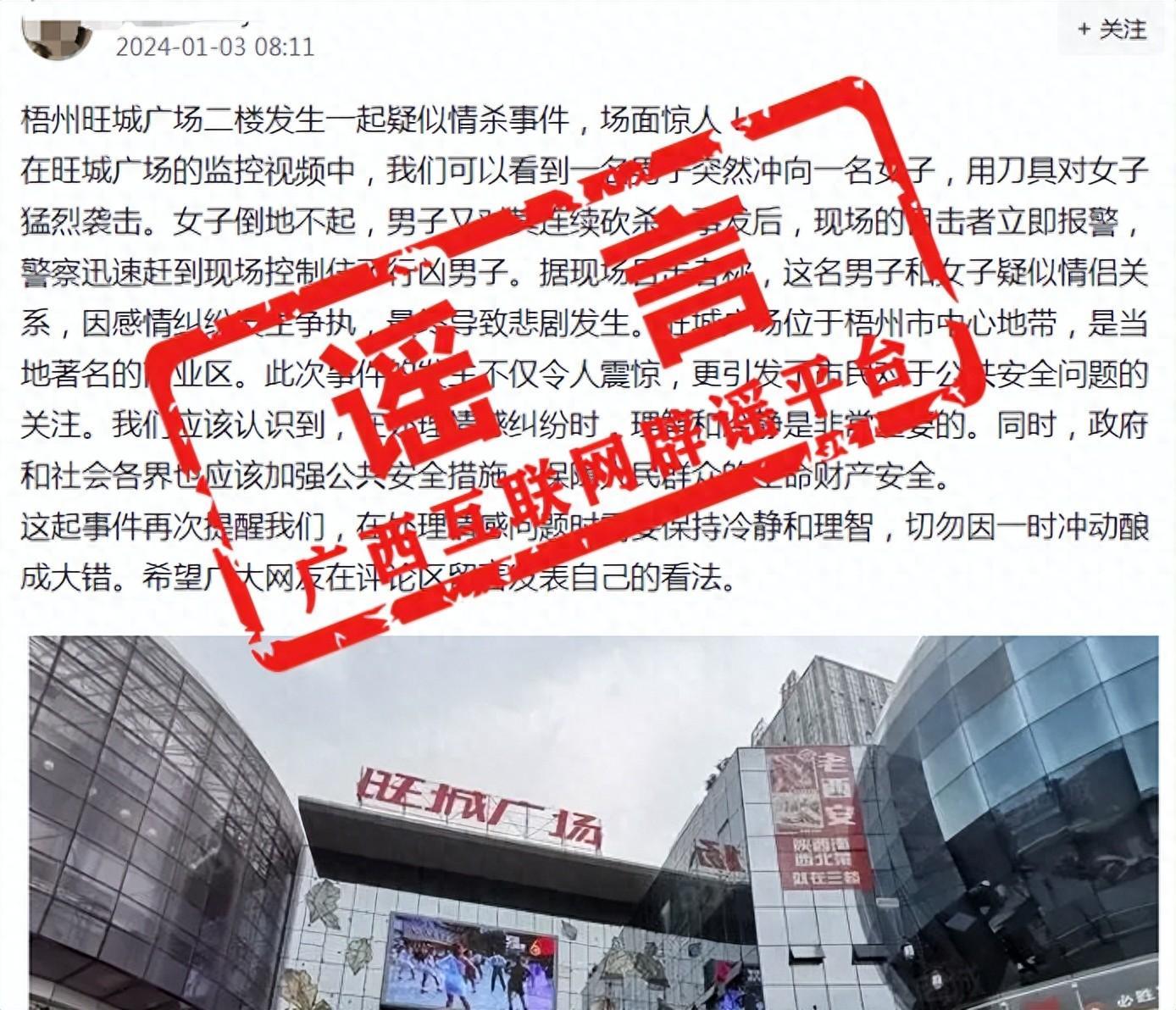廣西梧州旺城廣場發生疑似情殺事件?不實!