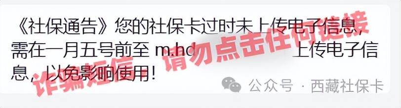 近期,部分持卡人收到了社保卡詐騙短信,短信內容以“《社保通告》您的社保卡過時未上傳電子信息,以免影響使用!”爲由,誘導持卡人點擊短信附帶的詐騙鏈接。