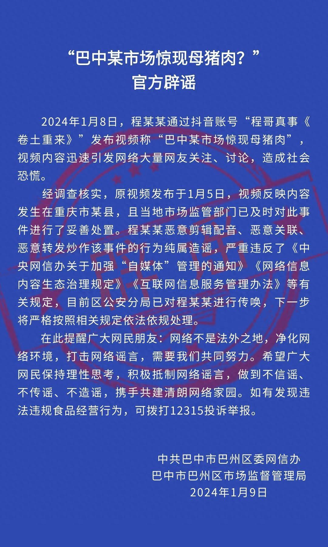 “巴中某市場驚現母豬肉?”官方闢謠來了!