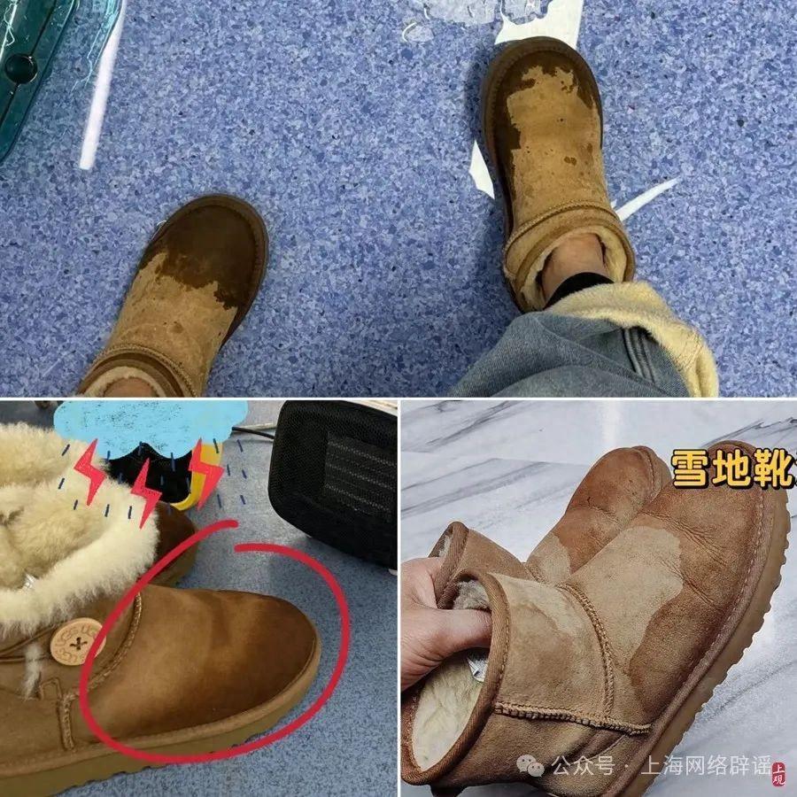 網友們在社交平臺分享的雪地靴遇水結果