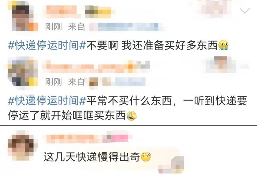 不少人評論稱“一聽到快遞要停運了就開始哐哐買東西”,還有人表示“這幾天快遞慢得出奇”。