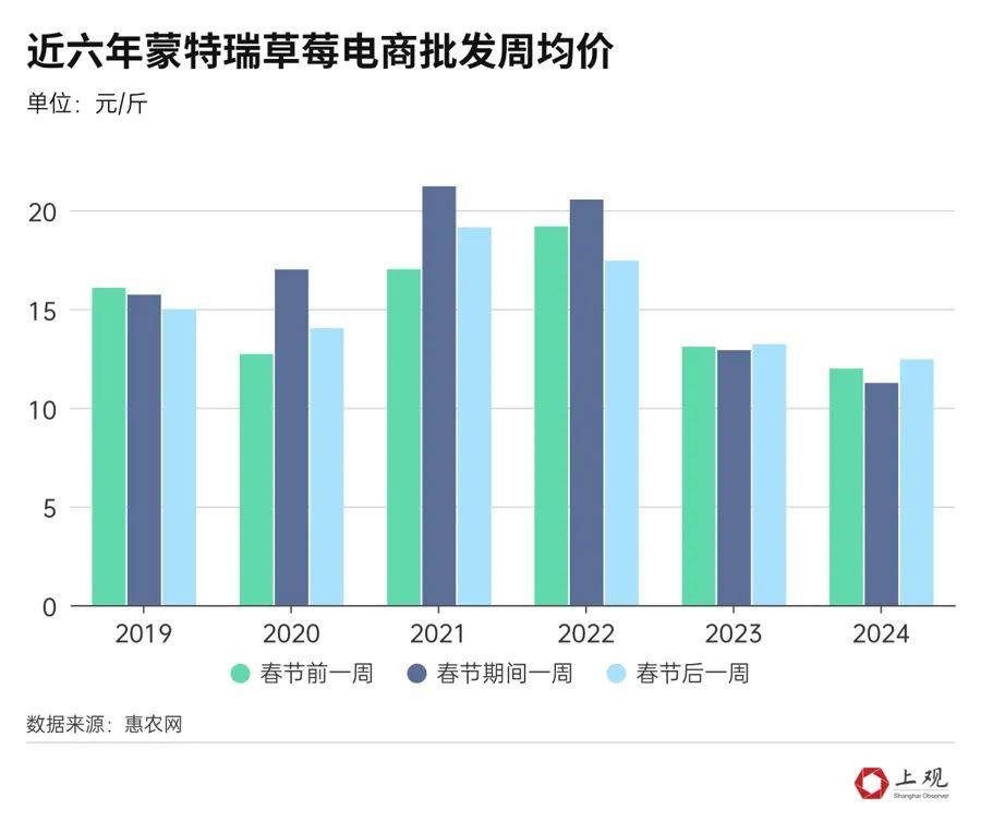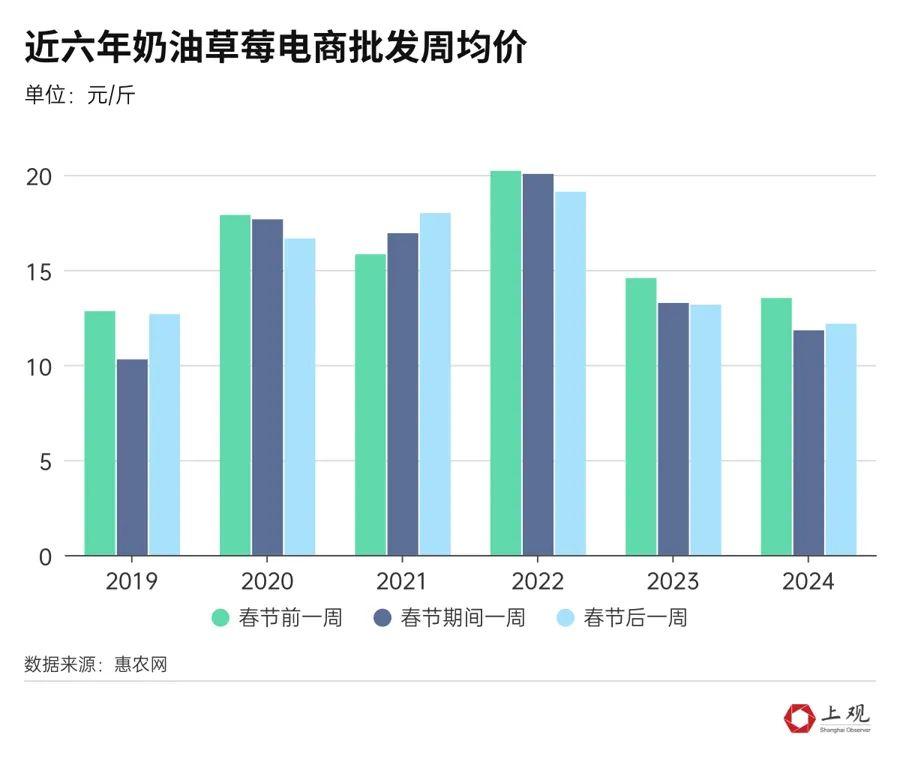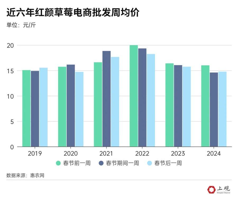 近日,“草莓價格腰斬”“草莓價格大跳水”等消息在網上熱度很高。但記者調查發現,所謂的“腰斬”“跳水”,是將當下的草莓價格與剛上市及春節期間相比,而非比對歷年同期價格。從草莓上市規律看,價格一般都是節前高、節後低;另外,不同渠道的價格差異也較大,所以“草莓價格腰斬”的說法並不全面。上海零售市場價格差異大上海市場上的草莓價格差異較大。以紅顏草莓爲例,目前在清美雲超中,不同包裝的售價分別爲21.8元/斤和26.3元/斤,的確比年前27.8元/斤和38元/斤的價格下降了不少。在盒馬上,紅顏草莓(產地江蘇南通)在2023年12月剛上市時,價格最高,爲49元/斤;之後,隨着大批量上市,價格一路下跌至30元以內,僅在2024年春節期間出現小幅回升,達到35.9元/斤;目前又迴歸到29.9元/斤。盒馬上售賣的紅顏草莓,價格隨上市時間逐漸下降,僅春節期間出現小幅上漲。在叮咚買菜上,紅顏草莓的價格爲33.5元/斤;在進口超市奧樂齊,紅顏草莓(產地崇明)大果的售價爲41.5元/斤;另一款超大草莓的零售價達到49.9元/斤,比年前45.9元/斤的價格還貴了4元;而在高檔超市citysuper超生活中,紅顏草莓的售價更是高達83元/斤。再看章姬草莓,在清美雲超中的售價爲30元/斤,比年前33.3元/斤的價格便宜了些;而盒馬上的章姬草莓(產地上海)自2023年11月上市以來,一度達到50元/斤的高位,但之後一路下跌,2024年春節過後,已跌至41.6元/斤;而章姬草莓在奧樂齊的售價一直保持在44.8元/斤。以上種種現實,目前上海市場上的草莓價格的確已出現回落,但與剛上市時的最高價相比,都沒有出現“腰斬”;在部分高檔超市中,草莓價格依然堅挺,部分品種甚至出現小幅漲價。其實,這符合草莓的上市規律。惠農網分析師李彬彬表示,草莓價格一般在剛上市時是相對高位,因爲貨源少,但是到了2月中下旬,隨着溫度回升,草莓上市進入高峯期,且春節後需求沒有明顯增加,所以價格下調。也有消費者表示,春節後買的草莓不如年前的好喫,所以市場降價也與草莓品質下降有關。批發價格主要受年份影響再看草莓的批發價,也沒有出現“腰斬”。記者分析了惠農網上最近六年春節前後全國主流草莓品種的電商渠道批發價格,總體來說,春節期間價格略高,春節前後價格略低。但與節前節後的細微波動相比,草莓批發價受年份的影響更大。分品種來看,紅顏草莓批發價在2022年春節前達到近六年最高價,19.98元/斤,之後僅有小幅回落;最低價出現在今年春節期間,僅14.58元/斤。再看章姬等奶油草莓品種,最高價同樣出現在2022年,春節前一週達到20.21元/斤。而2019年春節期間價格最低,爲10.29元/斤。還有一個草莓品種叫蒙特瑞,2021年春節期間漲至21.21元/斤,而今年春節期間已降至11.25元/斤。縱觀近六年草莓電商批發價格可以發現,主流品種都在2022年達到高位,2023-2024年出現回落。氣候、品種、產量都與批發價波動有關,其中充足的供給是導致價格變化的重要因素。當下,我國已成爲全球最大的草莓生產國和消費國,自2007年起,草莓栽培面積和產量長期穩居世界第一位,近十年來,草莓產業更是保持穩定較快發展,2011年至2020年的栽培面積年均增長4.95%,產量年均增長5.18%,高於水果類產量增速近1倍。截至2020年,我國草莓種植面積已達12.66萬公頃,總產量332.68萬噸,分別佔世界草莓的32.92%和37.54%。微信編輯:大白還原事實,洞悉真相。歡迎關注,留言舉報!