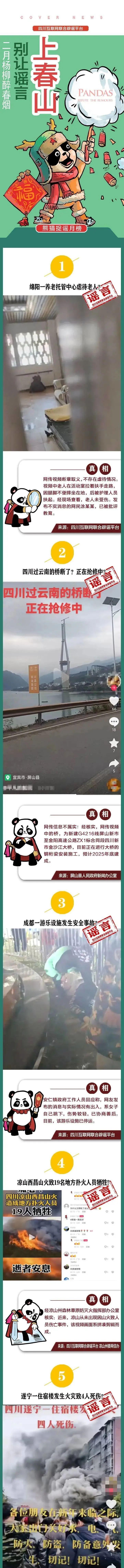 綿陽一養老託管中心虐待老人?四川過雲南的橋斷了,正在搶修?成都一遊樂設施發生安全事故?熊貓斬謠俠帶你梳理2月熱傳假消息,別讓謠言“上春山”!