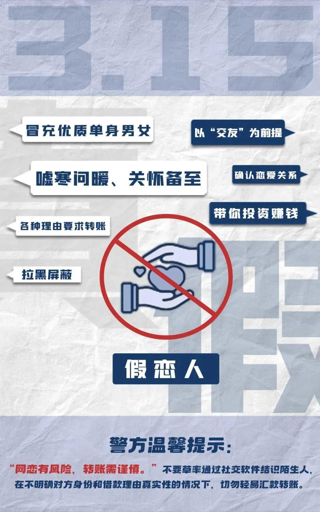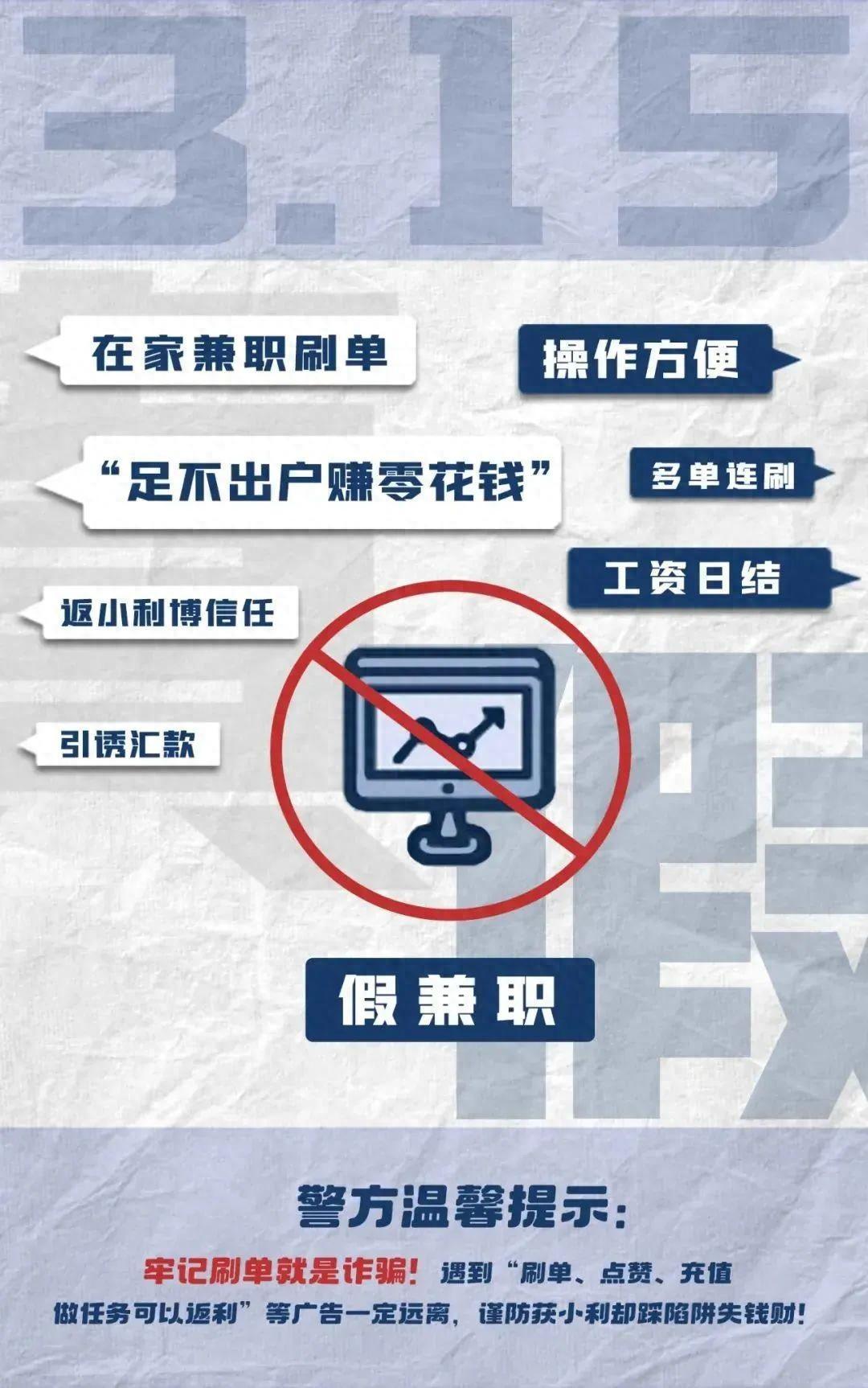 詐騙手段花樣多,提高警惕準沒錯;拉你進羣都是託,不貪便宜不操作;不明鏈接別亂戳,陌生來電有“假貨”;反詐何止3.15,更在每天365。
