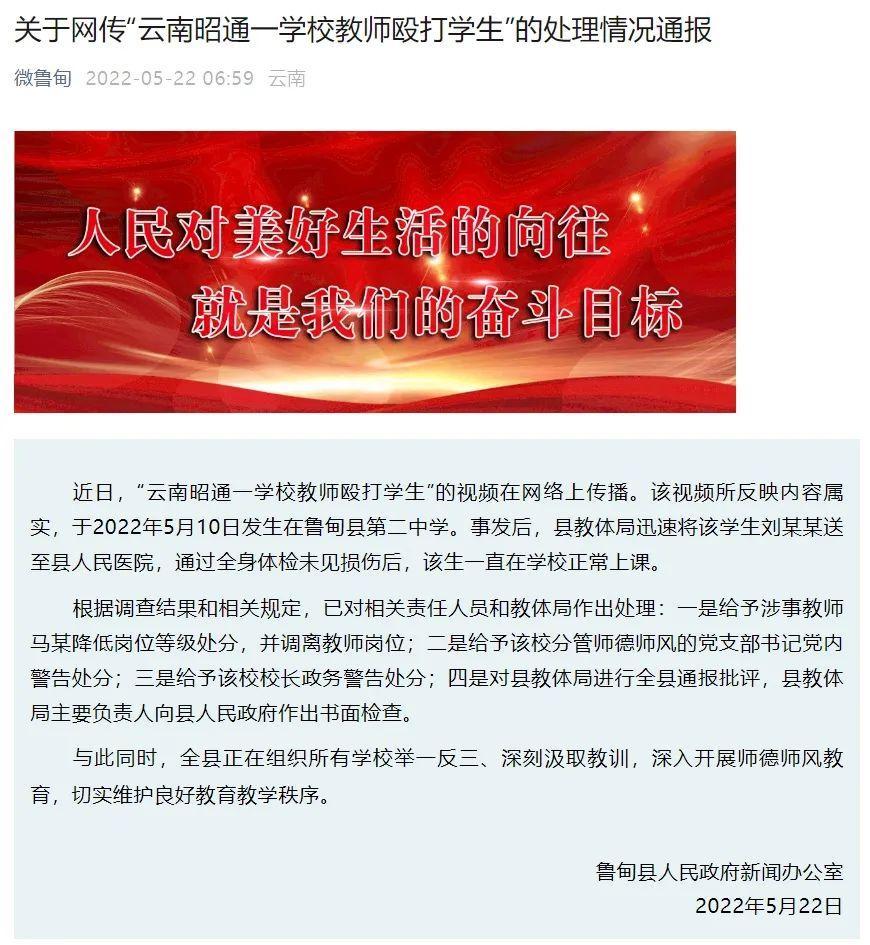 經搜索發現,這段視頻發生於2022年雲南魯甸縣第二中學,且當地已發佈官方通報進行了調查處理,而非事發今年的“四川成都”。目前,視頻發佈者已刪除相關視頻。