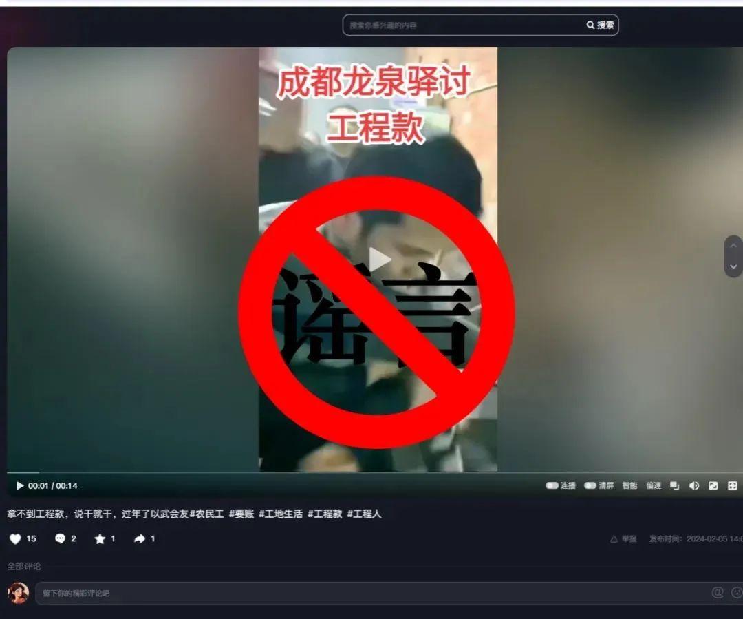 2024年2月,成都龍泉驛公安依法傳喚發佈虛假信息的人員閔某。目前,閔某被依法處以行政處罰。