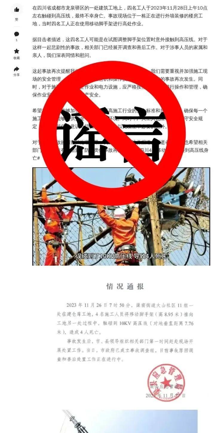 近期,朱某在互聯網看到“四川達州使用腳手架高空作業觸碰高壓線造成四人死亡”的新聞後,爲吸引眼球、博取流量,通過AI軟件合成,將內容篡改爲“成都龍泉驛區使用腳手架高空作業觸碰高壓線造成四人死亡”後發佈到互聯網,產生不良社會影響。