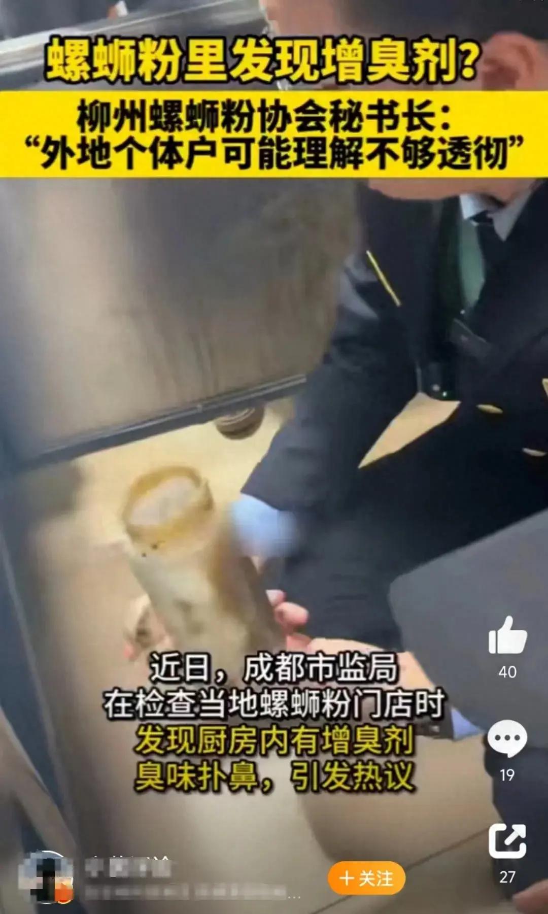 近日,成都市監局在檢查當地螺螄粉門店時,發現廚房內有增臭劑,臭味撲鼻,引發熱議。