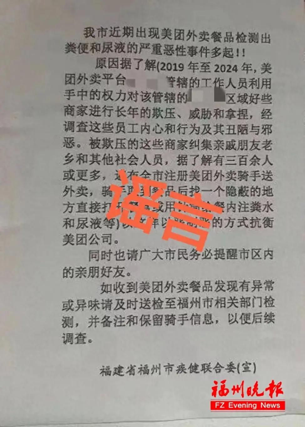 福州美團外賣檢出糞便和尿液?官方回應