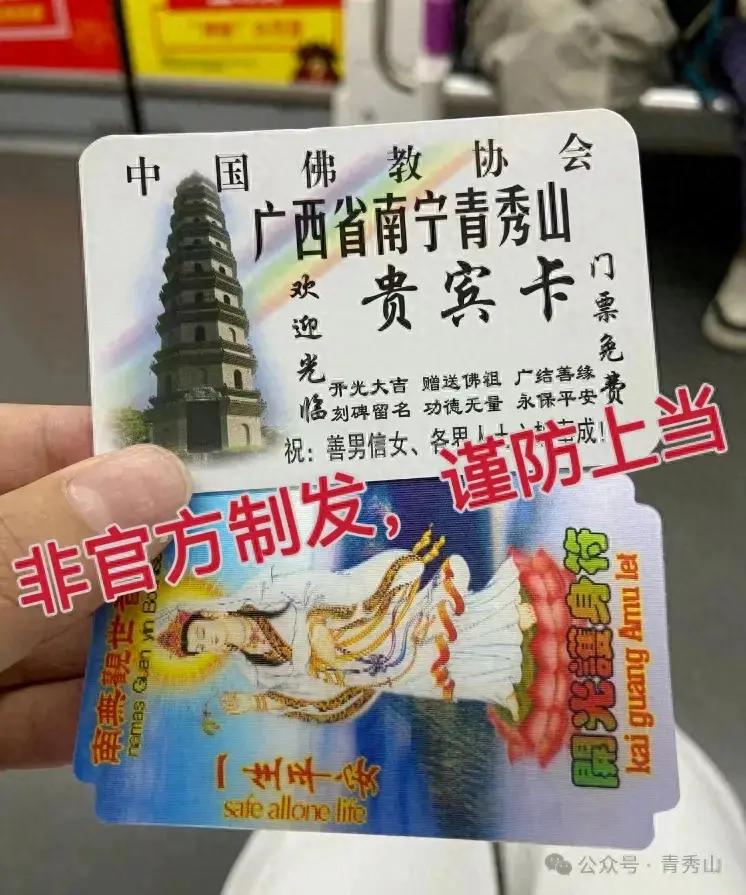 “中國佛教協會南寧青秀山貴賓卡”發放?非官方制發,謹防上當!