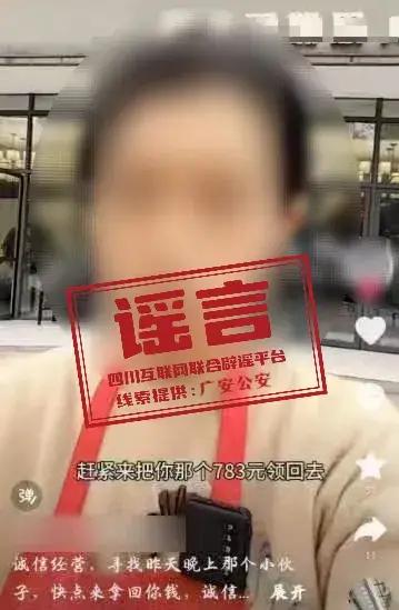 謠言:廣安嶽池縣一店家爲退顧客多付的783元發帖全網尋人?