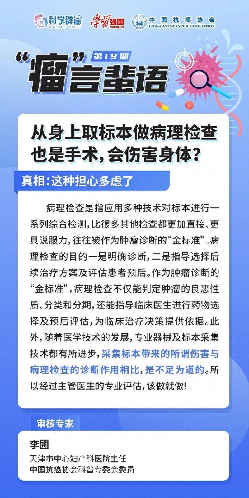 瘤言蜚語|從身上取標本做病理檢查也是手術,會傷害身體?