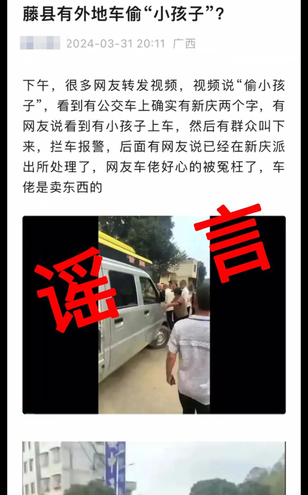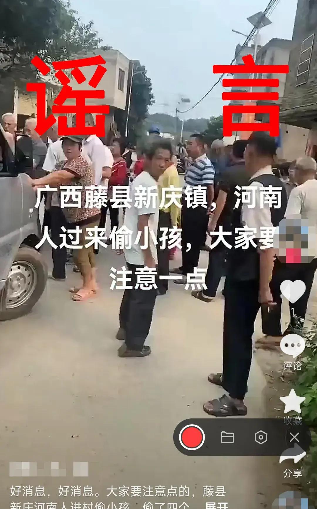 2024年3月,廣西梧州網警工作中發現,本地藤縣鍾某某、餘某某等7人,在短視頻平臺和公衆號上發佈“外省人來藤縣偷小孩”的視頻和文章。