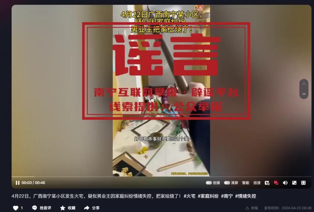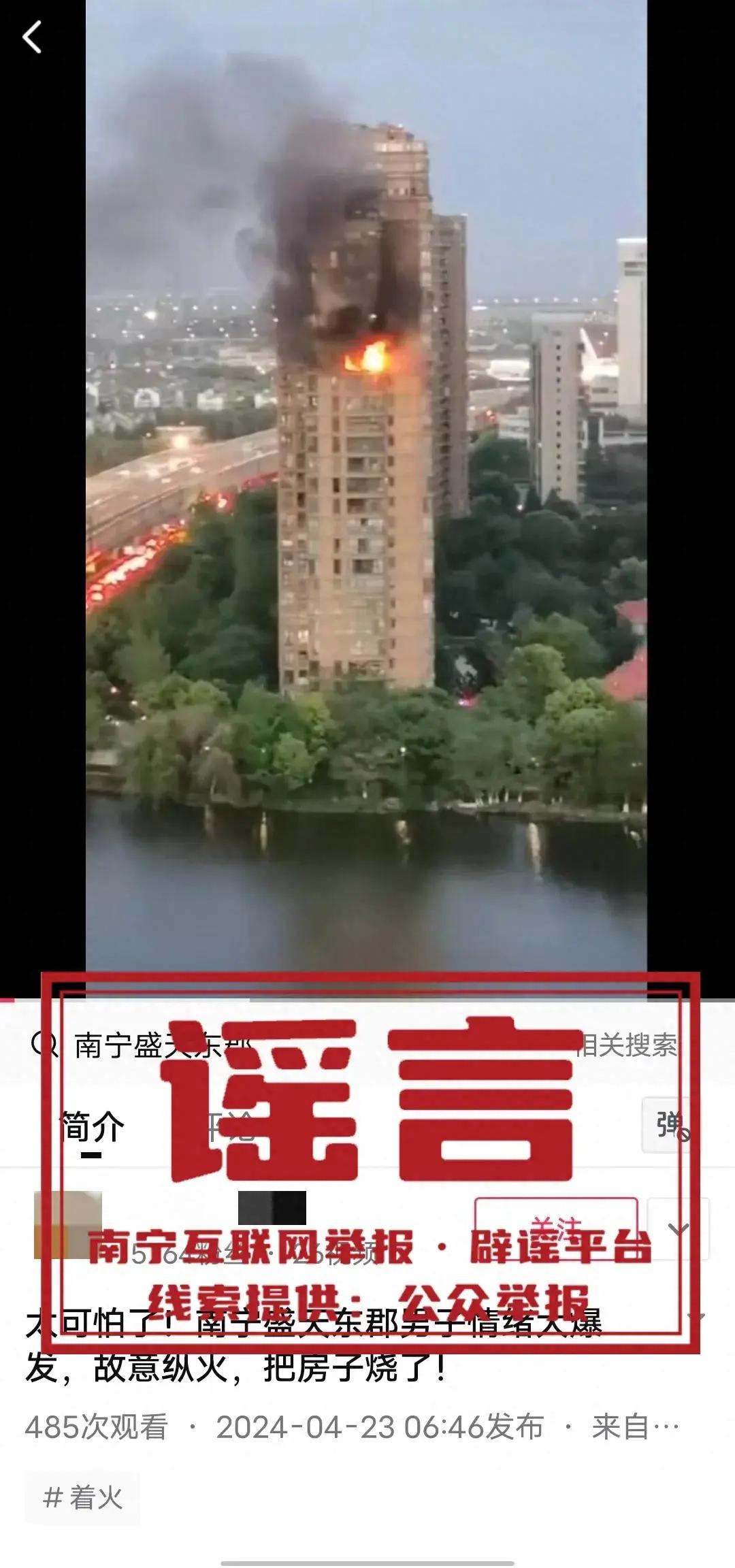 闢謠!網傳“南寧市某小區一男子因情感糾紛故意縱火燒家”系謠言