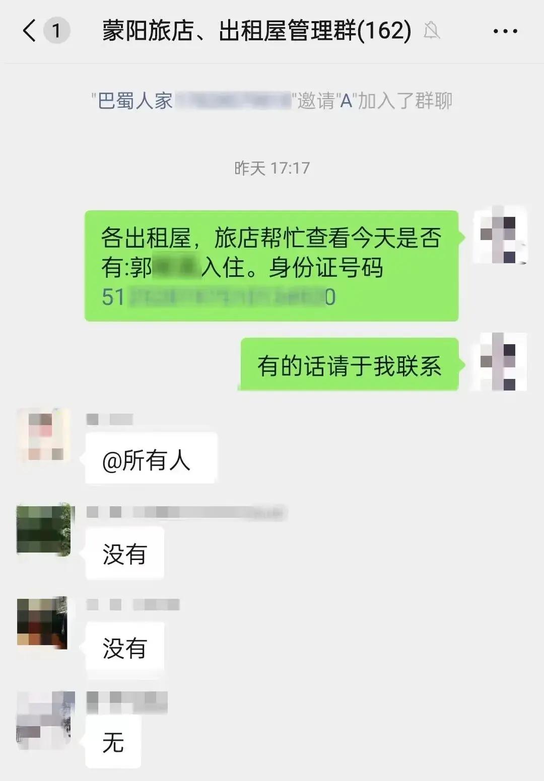 2024年5月5日,成都彭州市濛陽派出所接羣衆報警稱,其母親郭女士疑似接到詐騙電話,並攜帶餘額百萬的銀行卡外出後失聯。接警後,民警立即趕赴現場,在瞭解了基本情況後,民警迅速查找當事人並在派出所的住宿業管理微信羣內發佈協助尋人通知。