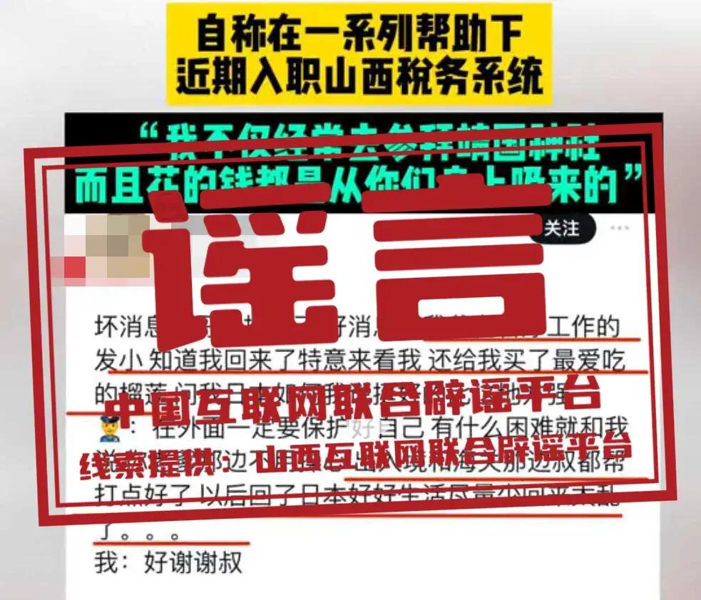 謠 言 山西發“辱華”言論男子入職國稅系統?
