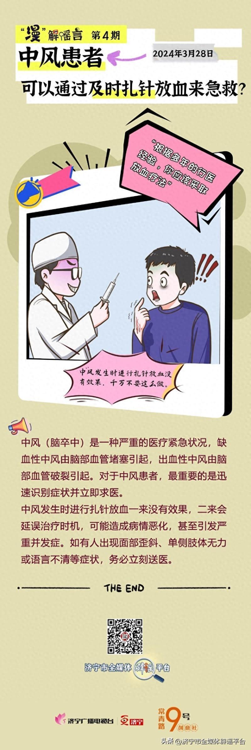 “漫”解謠言④| 中風患者可以通過及時扎針放血來急救?