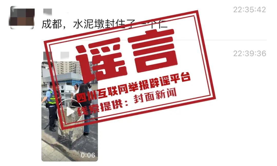 據覈實,聊天記錄中的三段視頻並非同一件事。其中,被指稱在成都的是當天春熙路某服裝店主與商場發生經營糾紛時報警求助的視頻;另外一段被指樓頂水泥墩中發現屍體的視頻,根據救援人員的着裝信息可見事發地在安徽。視頻中的樓頂圍牆、地面磚塊花紋和周圍環境均存在較大差異。(來源:封面新聞)