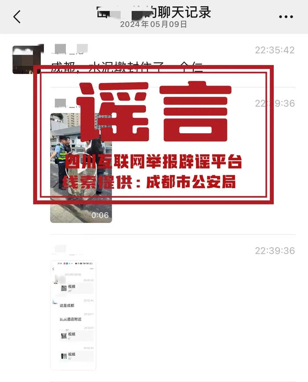 記者從成都市公安局瞭解到:2024年5月9日晚,網傳“成都,水泥墩封住了一個仁(人)”的不實信息,公安機關於5月10日13時依法將涉嫌散佈謠言的陳某(男,本市人,47歲)傳喚到案。