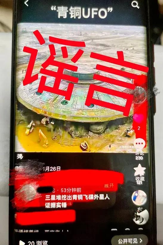 4月26日,龍某某爲博取眼球和吸引流量,在某短視頻平臺發佈了一張“青銅UFO”圖片,並在圖片下面散佈謠言:“三星堆挖出青銅飛碟 外星人證據實錘”,引發大量網民點擊、關注、轉發,擾亂了社會公共秩序,造成不良影響。