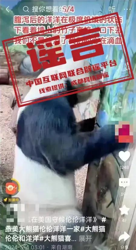 謠 言 旅美大熊貓“洋洋”口吐白沫、餓得啃牆皮?