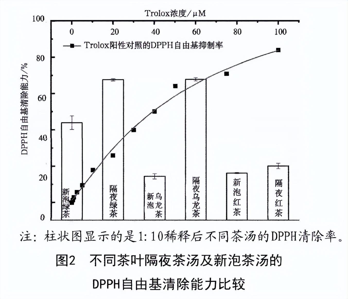 茶水中的營養含量不高,但抗氧化的植物化學成分較爲突出,比如茶多酚、黃酮類、茶氨酸等。從這些成分的含量檢測結果來看,隔夜茶的含量比新泡茶水還要高,對自由基清除的效果也更好。